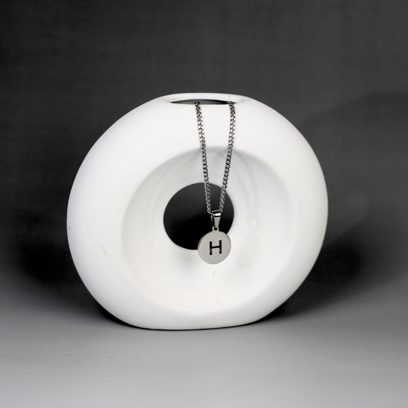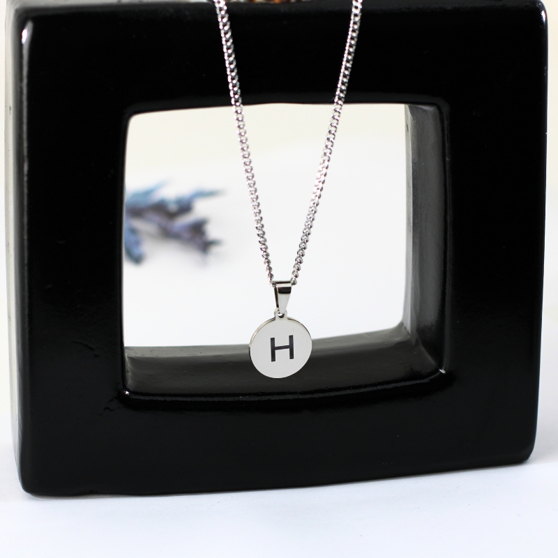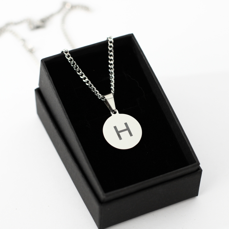 Our necklace with letter is made of titanium and can be ordered in gold or silver with your own letter, for example S, J, M or I. You can have this pendant engraved on 2 sides with your own letter and/or letter from your loved one. Engraving this beautiful pendant on 2 sides is free. That’s why you have a very special gift with this.
