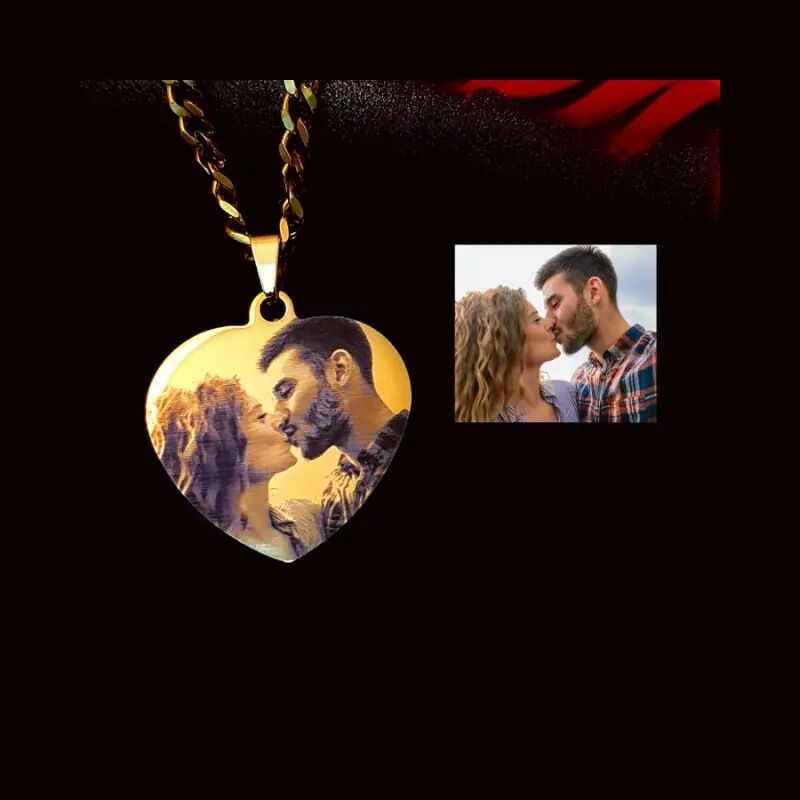 La qualité du collier gravé avec photo dépend du matériel photographique fourni. Assurez-vous donc de télécharger une photo claire.