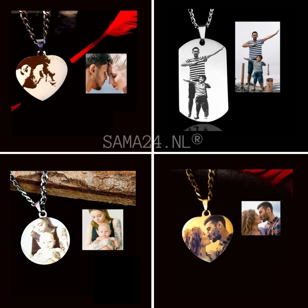 Sama24.nl grave tous ses produits, c’est pourquoi vous recevez avec tous les produits, qu’il s’agisse d’un collier à graver avec une photo en forme de cœur ou d’un collier avec nom, un résultat très précis et magnifique. Il est également possible pour tous nos produits de les faire graver des deux côtés avec du texte.