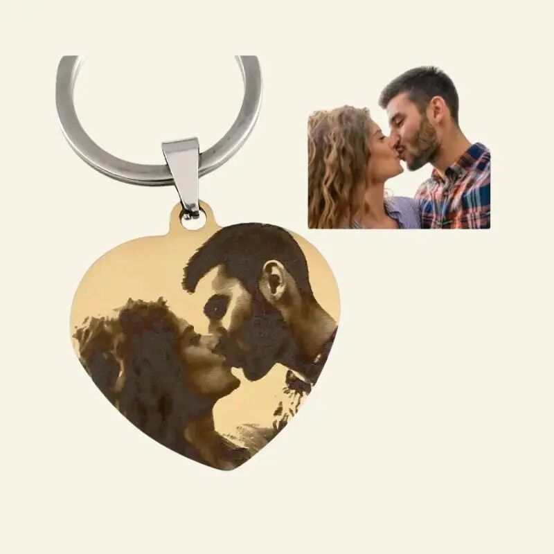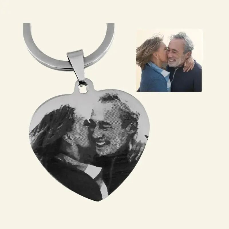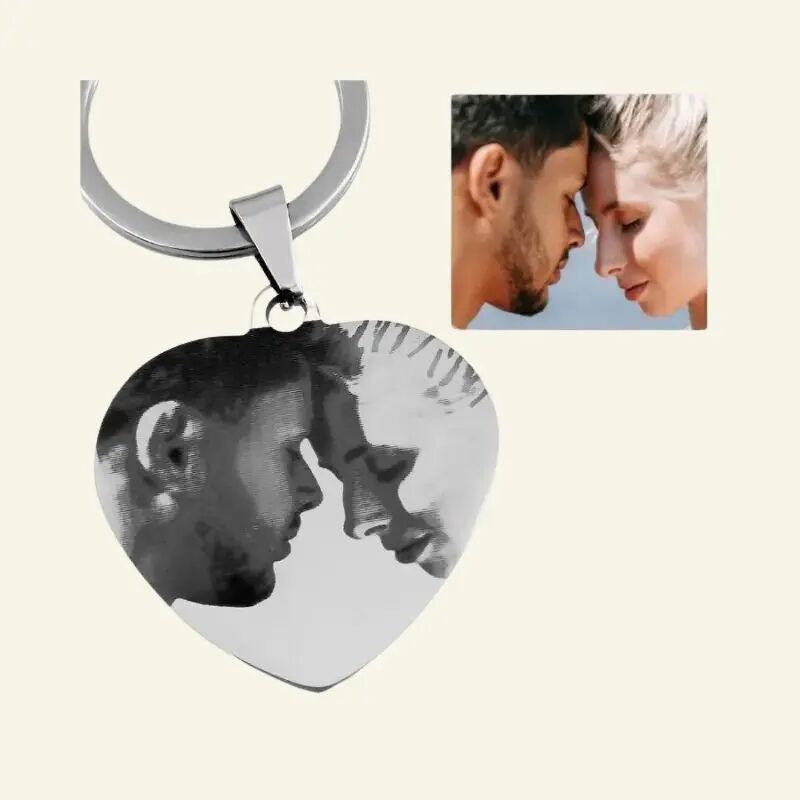 Choisissez une belle photo. Une photo est de votre famille, de votre ami ou de votre animal de compagnie, le choix vous appartient entièrement. Nous gravons ceci sur notre beau titane porte-clés gravéss.