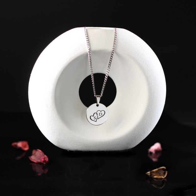 Onze bijzondere ketting met hartjes zilver kleurig met Titanium hanger is een mooi cadeau om je vriend of vriendin mee te verrassen. Laat een van deze ronde hanger van titanium in de kleur goud of zilver met 2 intialen graveren voor jezelf of je geliefde.