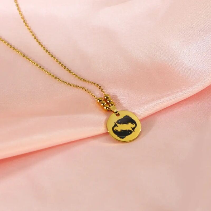 Onze hanger met sterrenbeeld is van titanium en is te bestellen in de kleur goud en je kan kiezen uit de verschillende sterrenbeelden bijvoorbeeld vis of een ram. Je kan deze hanger aan 2 kanten laten graveren met een sterrenbeeld en aan de achterkant een letter of een naam.