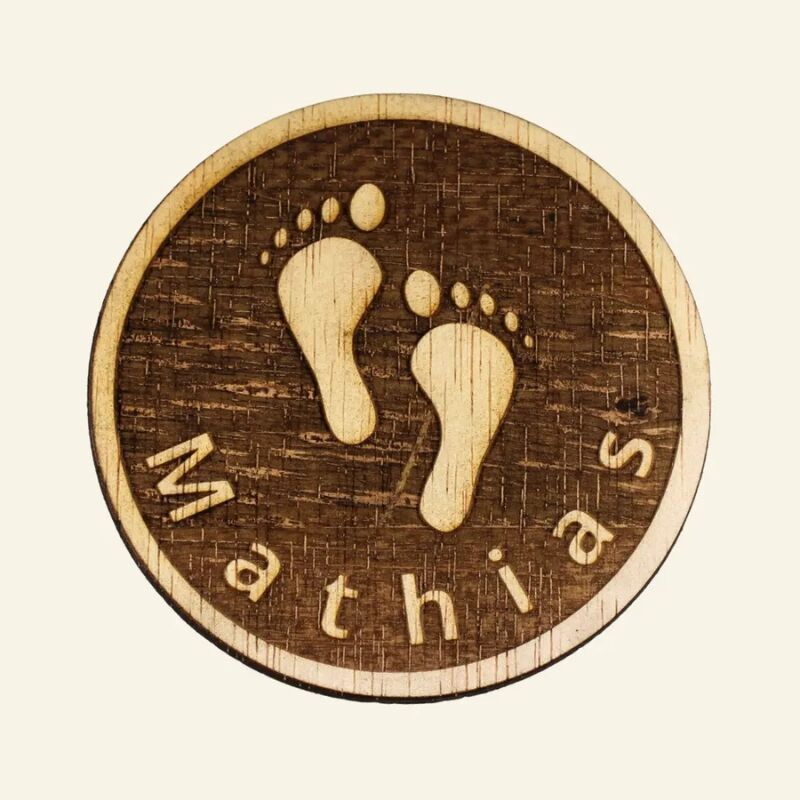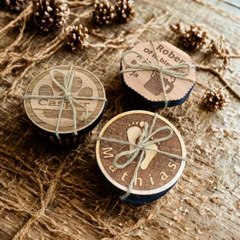 Wat is een houten onderzetter met een babynaam?